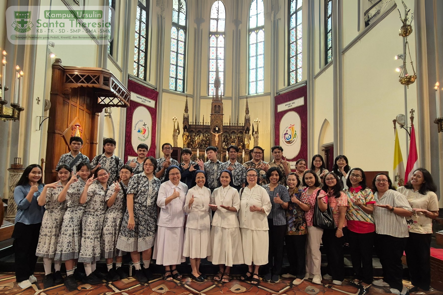 Kampus Ursulin Santa Theresia melaksanakan tugas pelayanan paduan suara di Paroki Katedral Jakarta Pusat hari Minggu, 31 Agustus 2025 pada misa live streaming pk. 08.30 WIB. Paduan suara kampus kali ini terdiri dari peserta didik SMP, SMA, SMK, para guru serta para suster.