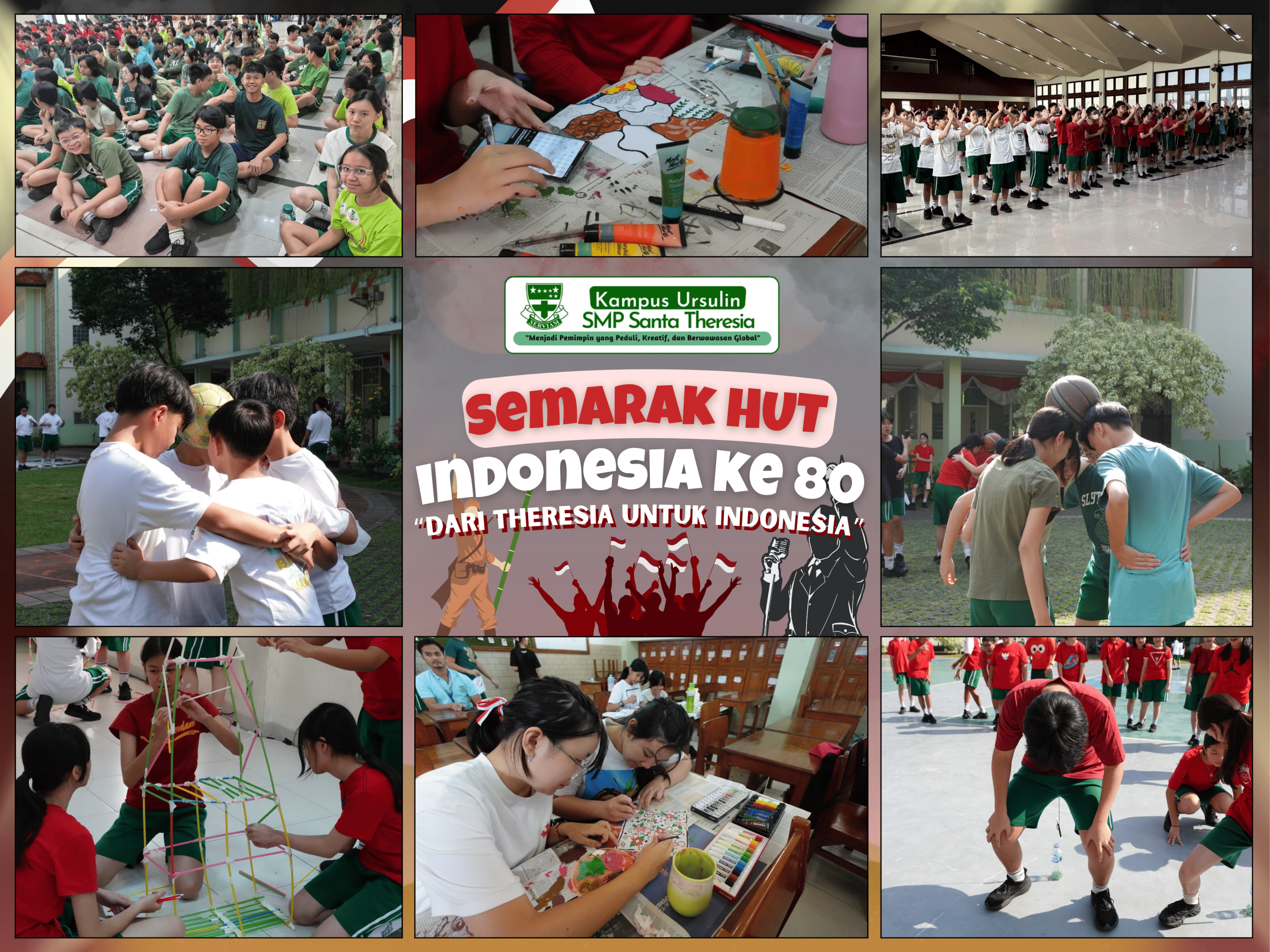Dalam rangka memperingati HUT ke-80 Kemerdekaan RI, SMP Santa Theresia menyelenggarakan lomba kemerdekaan pada 15 Agustus 2025. Acara dibuka dengan menyanyikan Indonesia Raya, Mars Serviam, serta Senam Indonesia Sehat, kemudian dilanjutkan dengan berbagai lomba seru yang dirancang dan dipandu oleh pengurus OSIS, antara lain: Komik Kemerdekaan, Susun Menara, Desain Batik, Susun Kata, Pertempuran Wawasan Nusantara, Treasure Hunt, dan Estafet Merdeka.